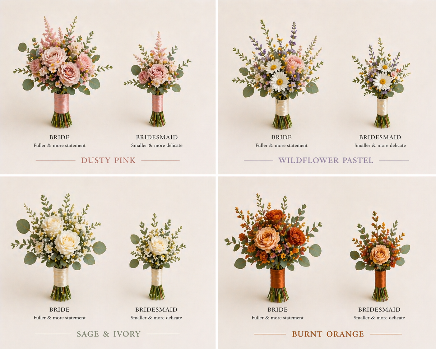 Please note: We require at least 2 weeks’ notice before your big day, as each bouquet is made to order and sent to arrive around 2 weeks before your wedding.
